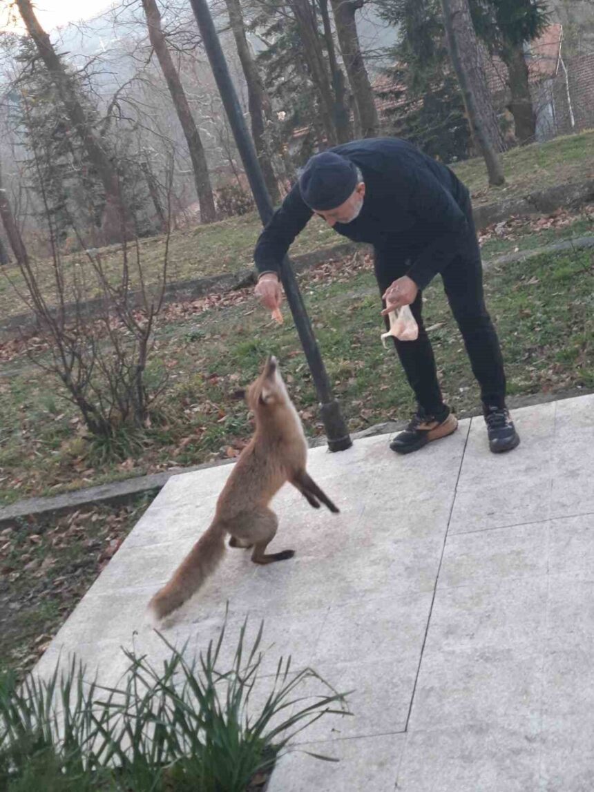 Misafirhane görevlisi, aç tilkiyi elleriyle besledi