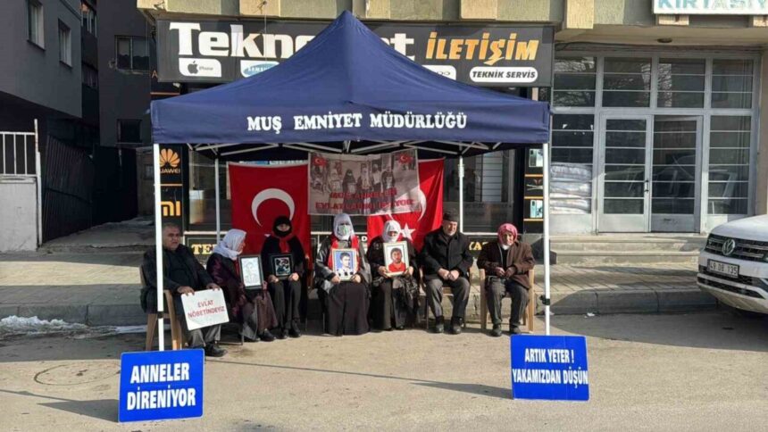 Muş’ta çocuklarının terör örgütü PKK tarafından kaçırıldığını belirterek DEM Parti il binası önünde oturma eylemi yapan anneler, evlat nöbetini kararlılıkla sürdürüyor.
