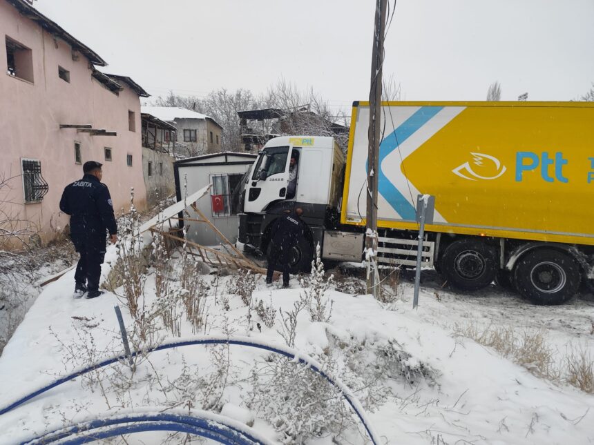 Reading: PTT Kargo Aracı Karlı Yolda Kontrolden Çıktı