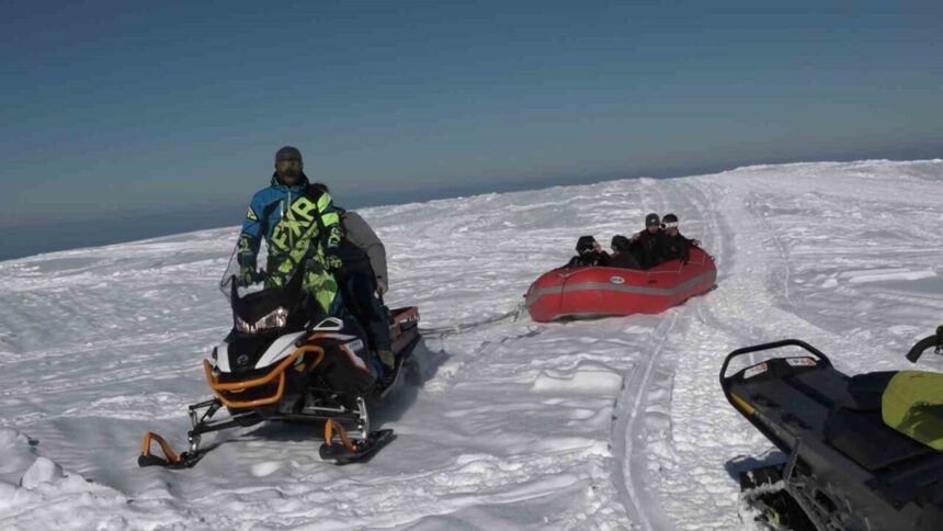 Rize’de derelerde yaşanan ve adrenalin duygusunu zirvede yaşatan rafting botları şimdi yaylalarda kar motorlarıyla birleşerek turistlere adrenalini dağların zirvesinde yaşatıyor.