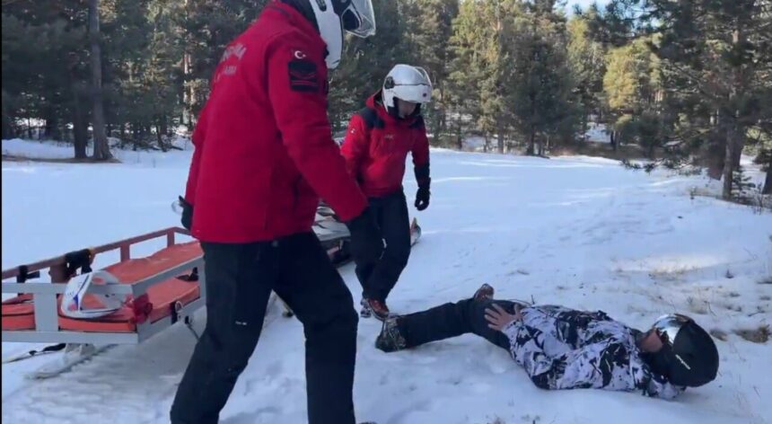 Sarıkamış Kayak Merkezi’nde senaryo gereği yaralanma olayının 112 Acil Çağrı Merkezi’ne bildirilmesi üzerine JAK Timleri harekete geçti. Kısa sürede kar motorlarıyla olay bölgesine ulaşan ekipler, 2 ayrı nokta kayarken düşerek yaralanan vatandaşları önce sedyeye aldı, ardından da kar motorunun arkasındaki kızağa yerleştirdi. Sarıkamış oteller bölgesine getirilen yaralılar burada ambulansa alınarak Sarıkamış Devlet Hastanesi’ne sevk edildi. JAK timlerinin tatbikatı gerçeği aratmazken, bu tür tatbikatlar muhtemel kış kazalarında hızlı ve etkin müdahale açısından büyük önem taşıyor. Sarıkamış’ta gerçekleştirilen tatbikat, JAK timlerinin profesyonelliğini bir kez daha gözler önüne serdi.
