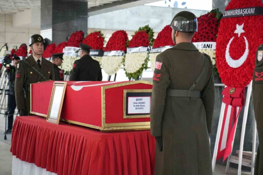 Irak’ın kuzeyinde bölücü terör örgütü mensupları tarafından açılan taciz ateşi sonucu ağır yaralanan ve tedavi gördüğü hastanede şehit olan Astsubay Kıdemli Üstçavuş Ufuk Akıncı, Ankara’da düzenlenen törenle son yolculuğuna uğurlandı.