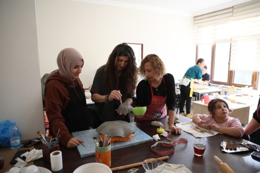Kartepe’de ev hanımlarının yoğun ilgi gösterdiği seramik kursunda, uzman eğitmenler eşliğinde üretilen eserler göz dolduruyor.