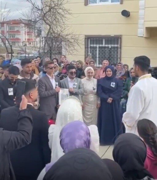 İmam kılığına giren genç, mikrofonu eline alarak, evlenen arkadaşına yönelik esprili bir şekilde helallik istemeye başladı. Davetlilerin şaşkın bakışları arasında gerçekleşen bu mizahi anlar, kısa süreli bir şok etkisi yaparken, ardından gülümsemelere neden oldu. O anlar kameralara yansıdı.