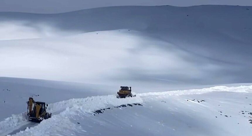 Şırnak’ın Beytüşşebap ilçesinde kar esareti sürüyor. Kar kalınlığı yer yer 2 metreye çıkan bölgede iş makineleri yol açma çalışmalarına devam ediyor.