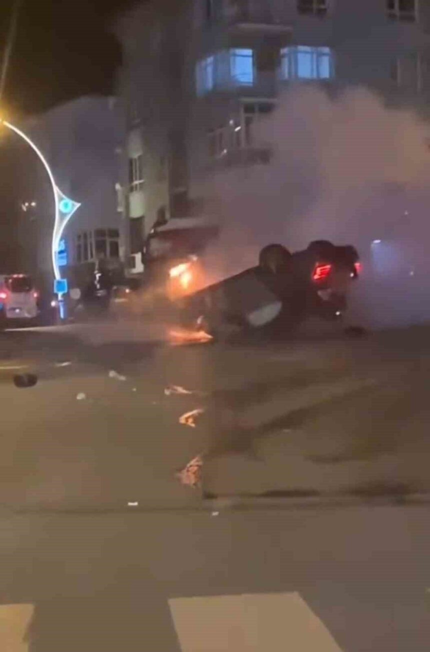 Ankara’da sürücüsünün kontrolünü kaybettiği Mercedes marka otomobil, takla atmasının ardından yanmaya başladı. Korku dolu o anlar cep telefonu kamerasına yansıdı.