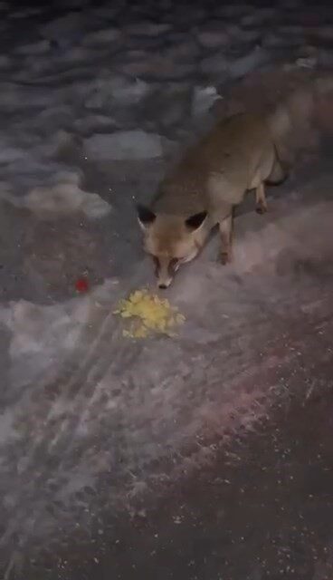 Tilkiyi elleriyle verdiği cips ile besledi