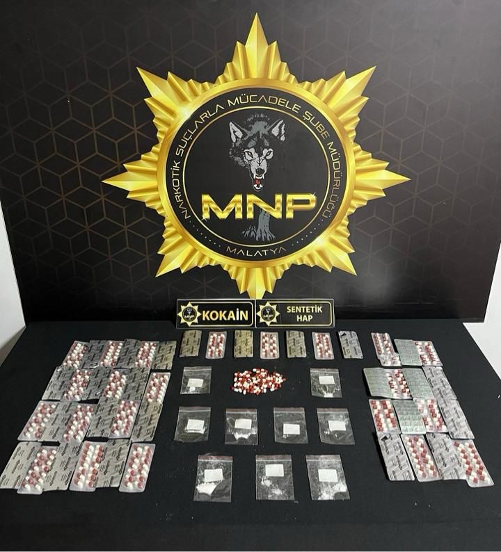Malatya Emniyet birimlerince yürütülen risk analizine dayalı saha taramaları ve istihbari çalışmalar neticesinde, kent merkezinde uyuşturucu madde ticaretine yönelik operasyonel birimlerce eş zamanlı uygulamalar gerçekleştirildi. Yapılan çalışmalarda 1.370 adet sentetik ecza hap ile 7,31 gram kokain maddesi ele geçirilerek suç unsurları mevzuata uygun şekilde muhafaza altına alındı.