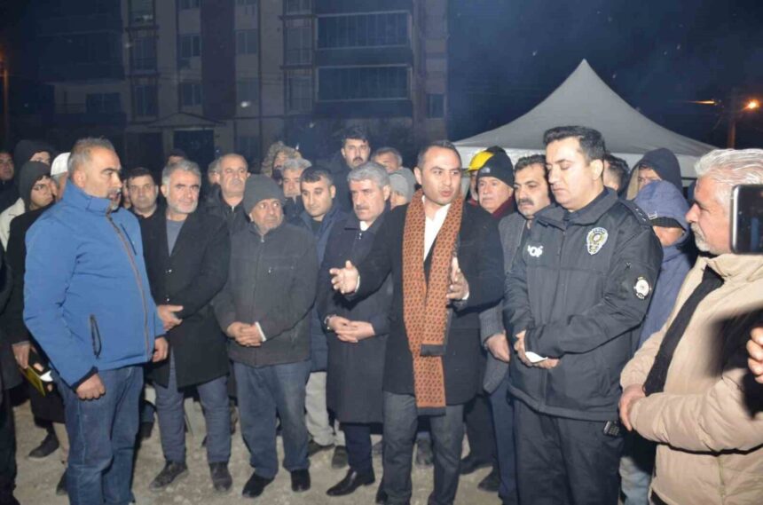 Besni Üzümkent Sitesi’nin yıkılan binalarında yakınlarını kaybeden vatandaşlar, anma töreni düzenledi.