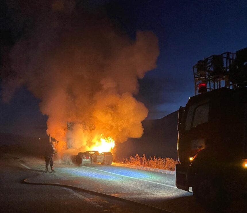 Van’ın Çaldıran ilçesinde seyir halindeki tır alev alev yandı.
