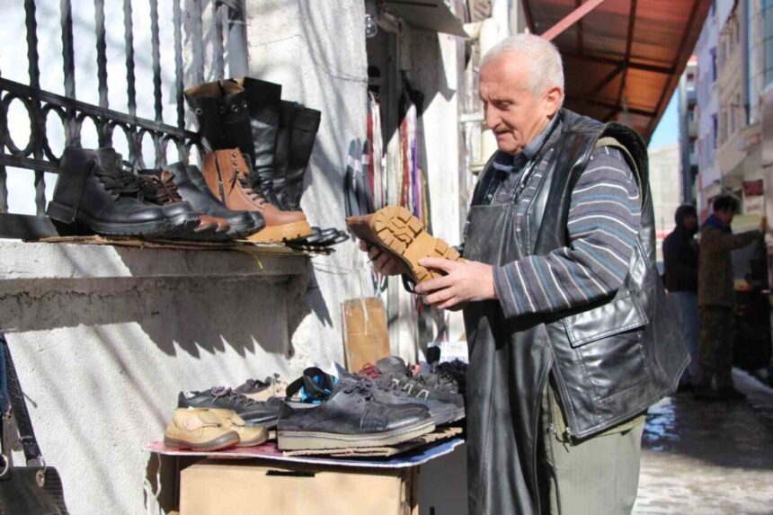 Van’da 54 yıldır ayakkabı tamirciliği yapan 71 yaşındaki Muhittin Deniz, çöpte bulduğu eski ayakkabıları tamir ederek ihtiyaç sahiplerine ulaştırıyor.