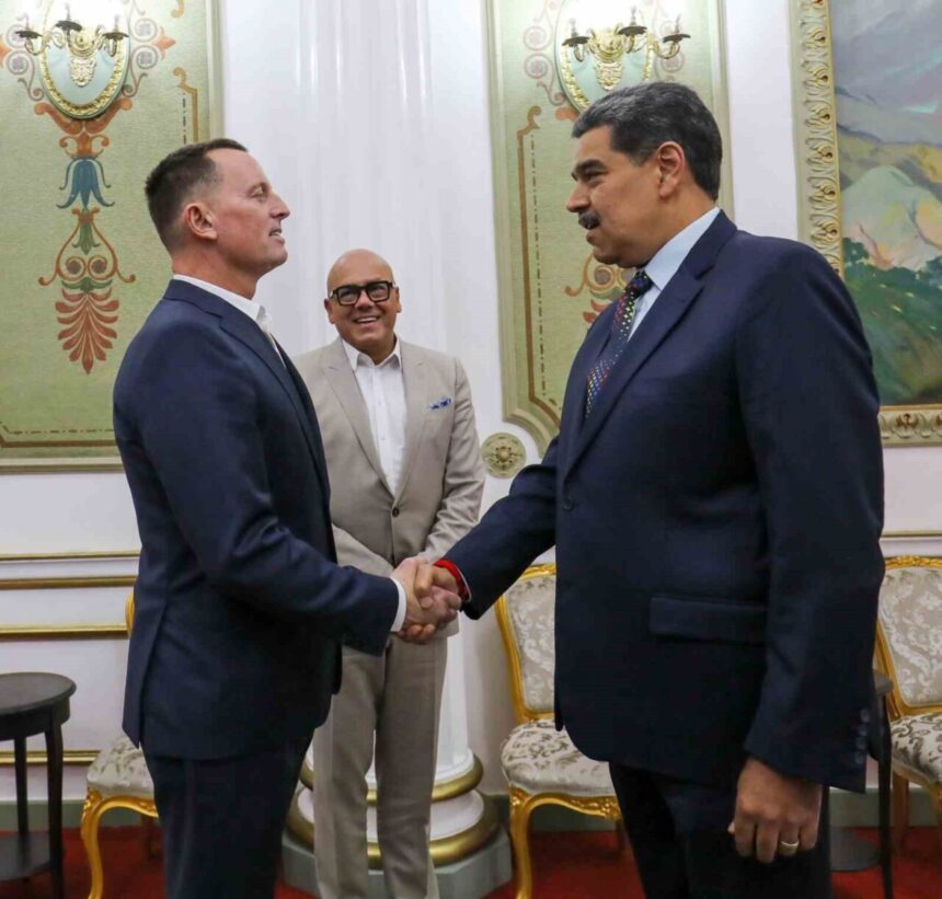 ABD Başkanı Donald Trump’ın Özel Temsilcisi Richard Grenell, Venezuela’nın başkenti Caracas’ta Venezuela Devlet Başkanı Nicolas Maduro ile bir araya geldi. Venezuela hükümetinden görüşmeye ilişkin yapılan açıklamada, Maduro ve Grenell’in başkanlık sarayında iki ülke arasındaki ilişkileri, düzensiz göç ve yaptırımları ele aldığı belirtildi. Görüşmenin ardından Venezuela’da tutuklu bulunan 6 ABD vatandaşı serbest bırakıldı. Trump’ın Özel Temsilcisi Grenell ABD’ye dönmek üzere uçaktan yaptığı paylaşımda, “6 ABD’li vatandaşımızla birlikte evlerimize doğru yola çıktık. Az önce Başkan Donald Trump ile konuştular ve ona teşekkür ettiler” ifadelerini kullandı.