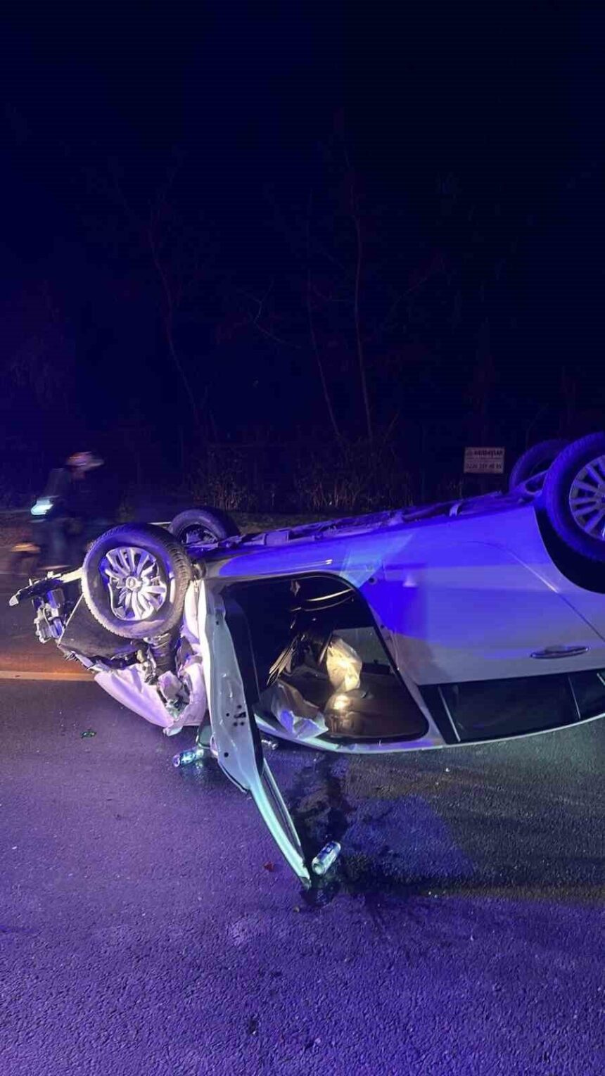 Yalova’da sürücüsünün alkollü olduğu öğrenilen otomobil önce yolcu minibüsüne, ardından kaldırıma çarparak takla attı.
